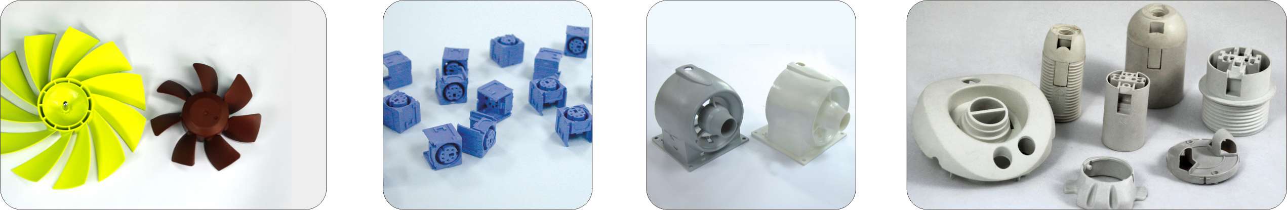 工业/电气: 电脑接插件、线圈骨架、仪表及机械零部件、继电器及电器外壳、节能灯,家用电器、照明、运动器材等。电动工具、机电部件、凸轮、泵壳体、螺旋浆、结构罩壳等。